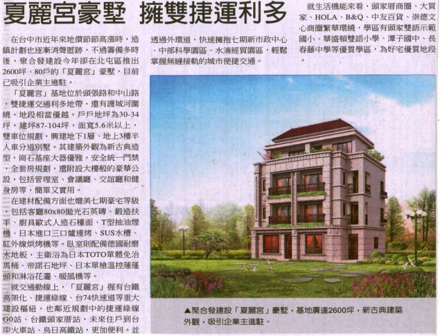 [中國時報] 夏麗宮豪宅 擁雙捷運利多 ...