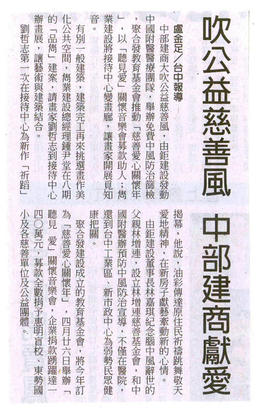 [中國時報] 吹公益慈善風 中部建商獻愛 ...