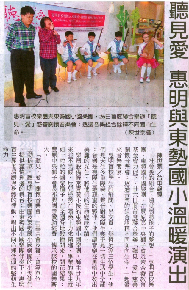 [中國時報] 聽見愛 惠明與東勢國小溫暖演出 ...