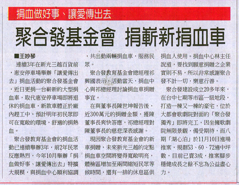[工商時報] 聚合發基金會 捐嶄新捐血車 ...