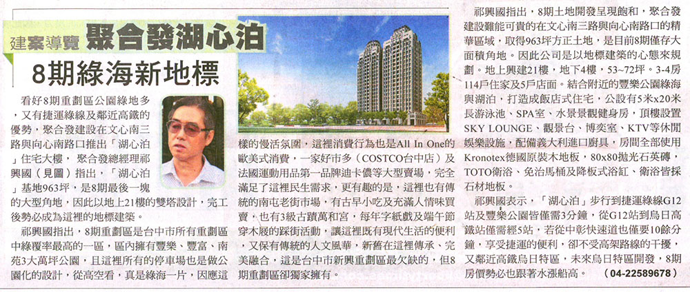 [自由時報] 聚合發湖心泊8期綠海新地標 ...