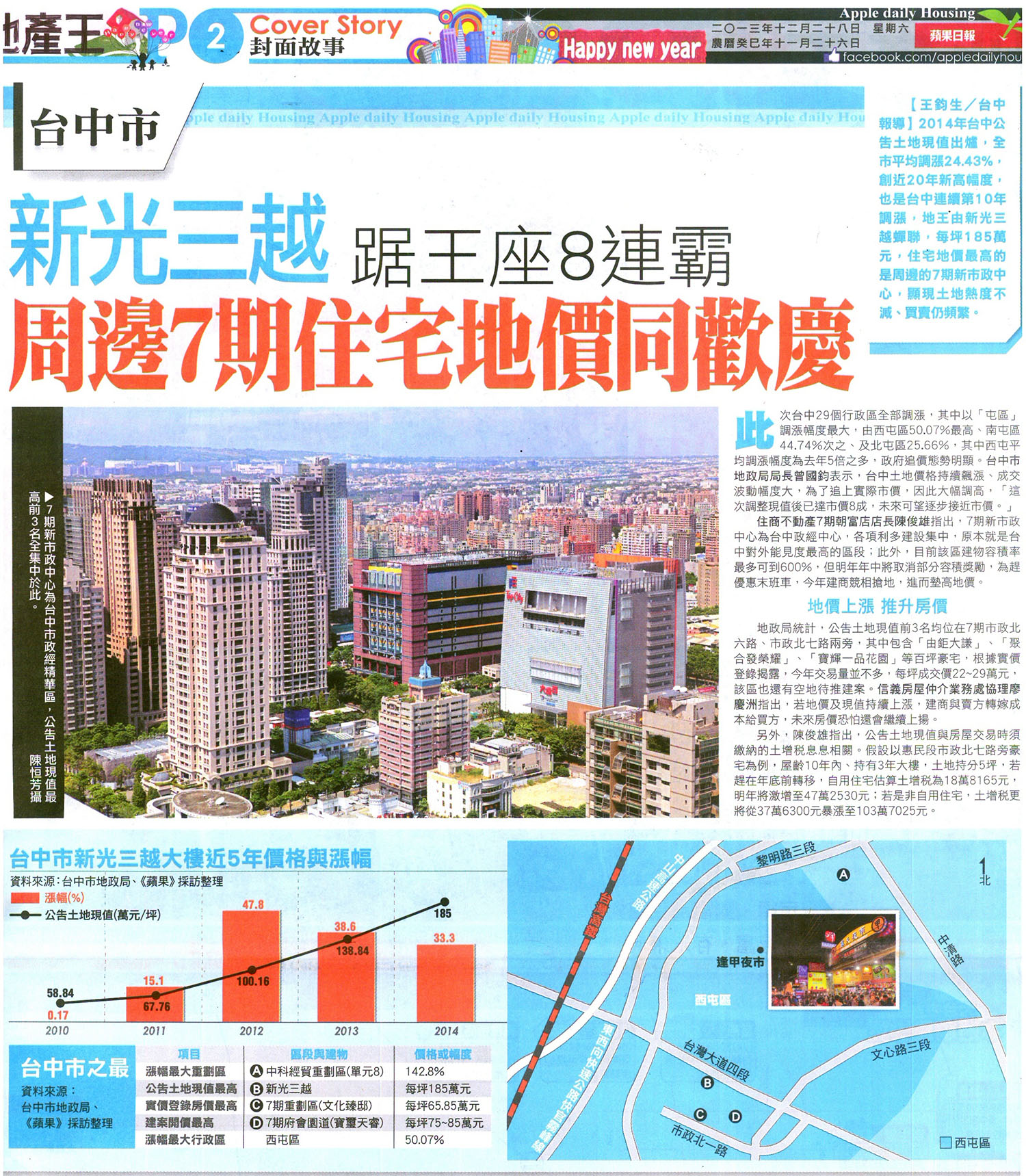 [蘋果日報] 新光三越踞王座8連霸周邊7期住宅地價同歡慶 ...