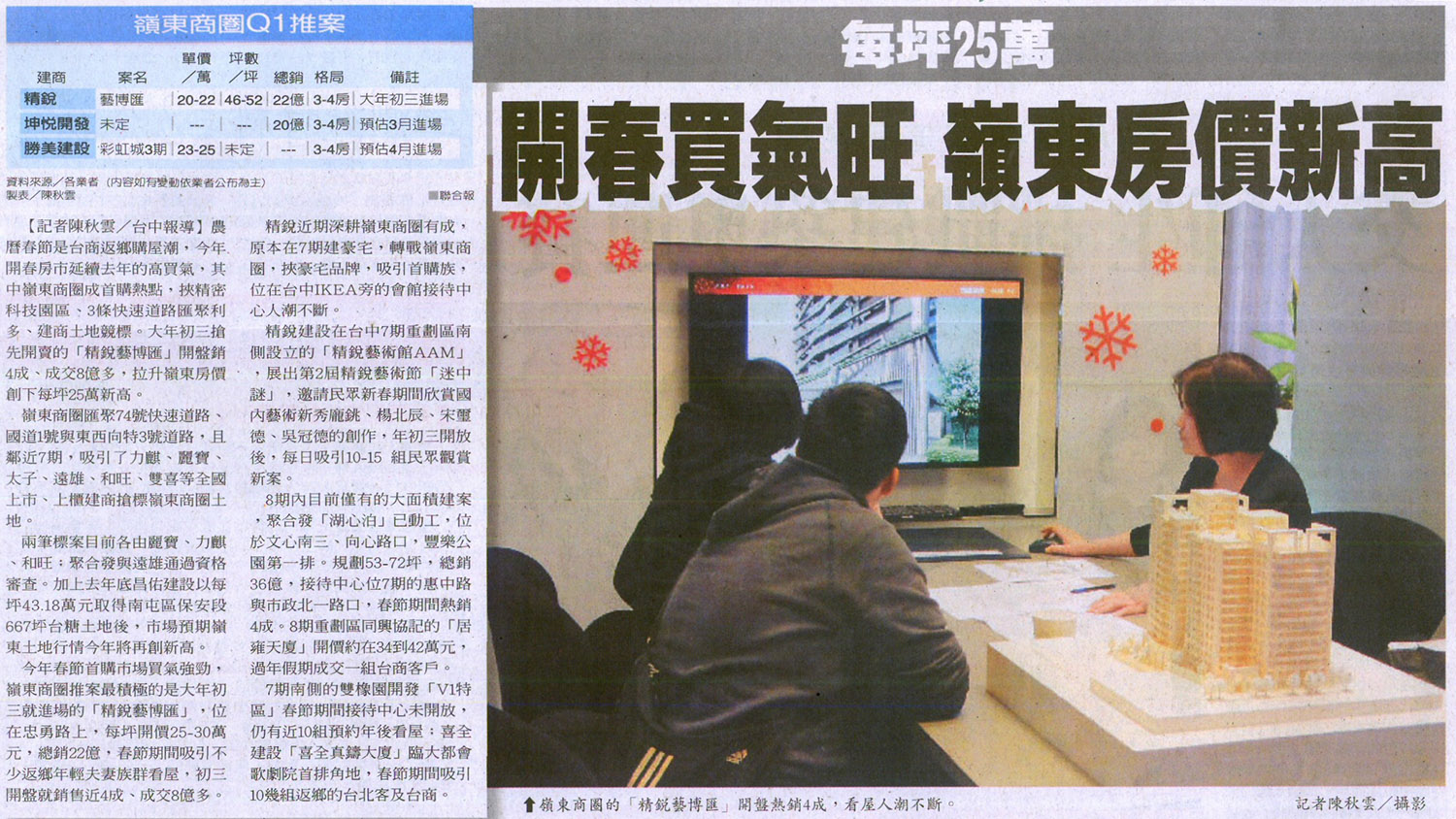 [聯合報] 開春買氣旺 嶺東房價新高 ...