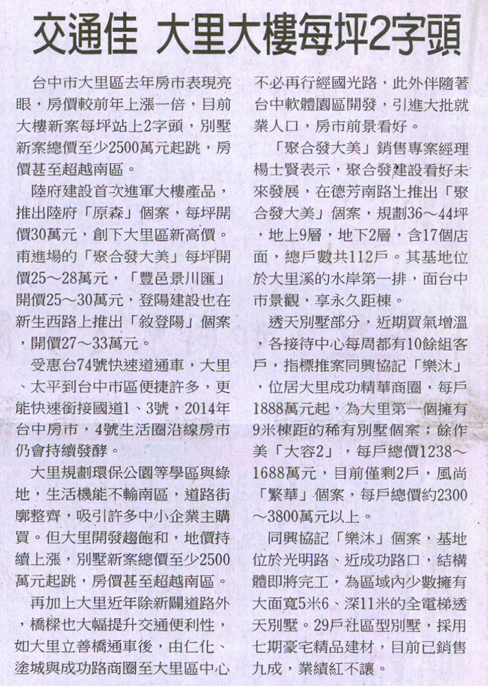 [中國時報] 交通佳 大里大樓每坪2字頭 ...