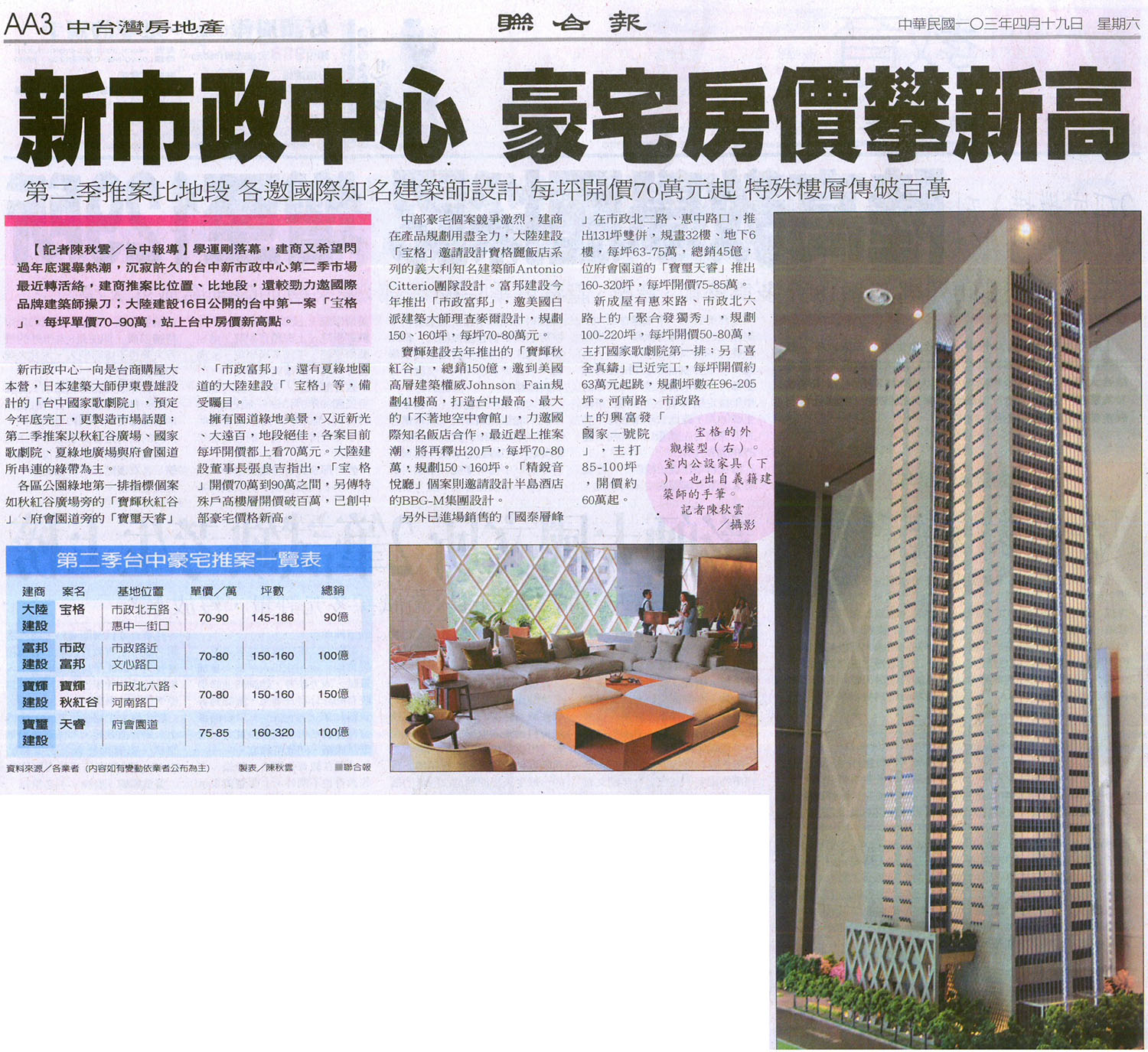 [聯合報] 新市政中心 豪宅房價攀新高 ...