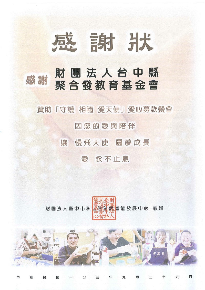 贊助「守護 相隨 愛天使」愛心募款餐會。
