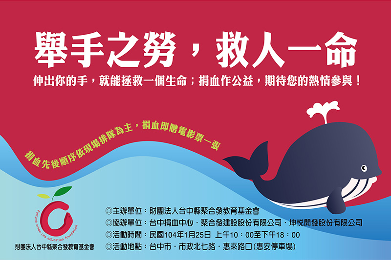 舉手之勞,救人一命,捐血即贈電影票一張。