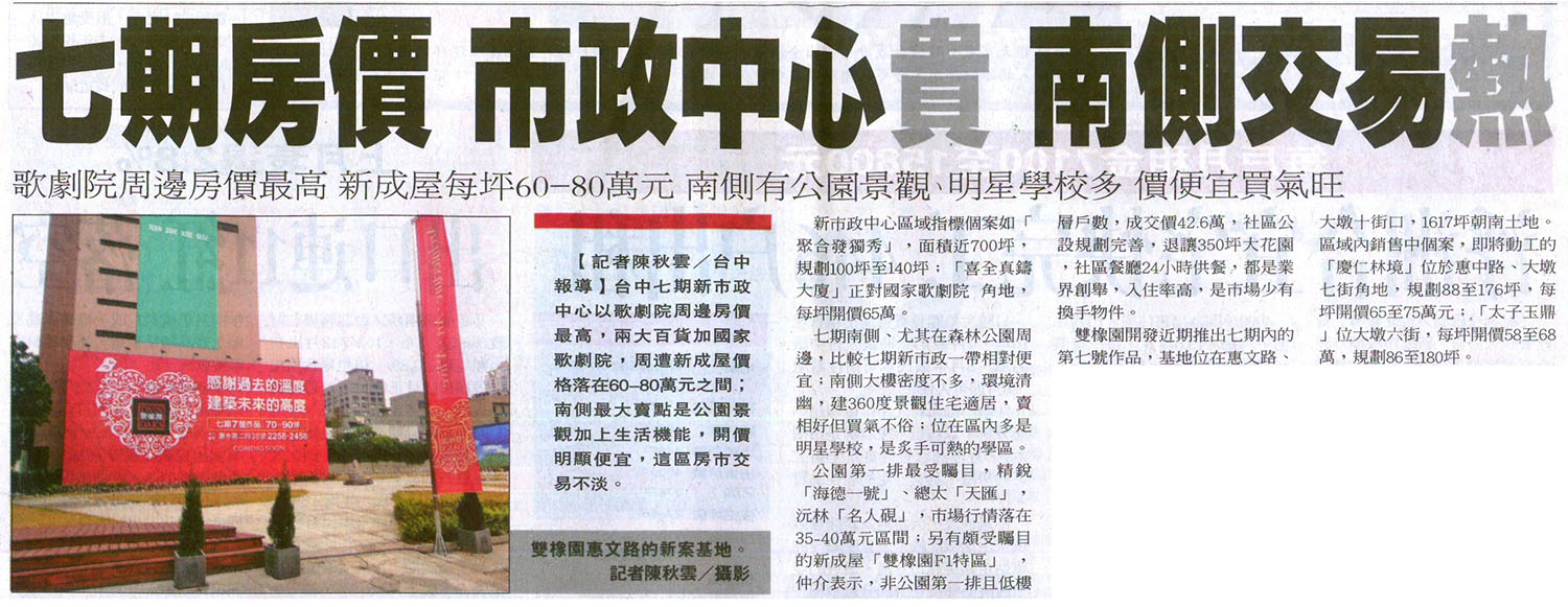 [聯合報] 七期房價 市政中心貴 南側交易熱 ...