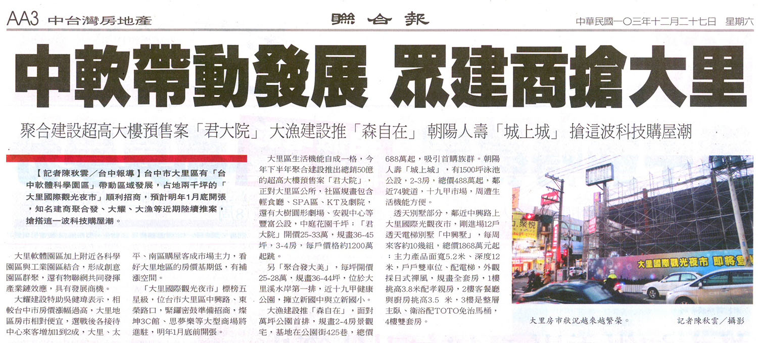 [聯合報] 中軟帶動發展 眾建商搶大里 ...
