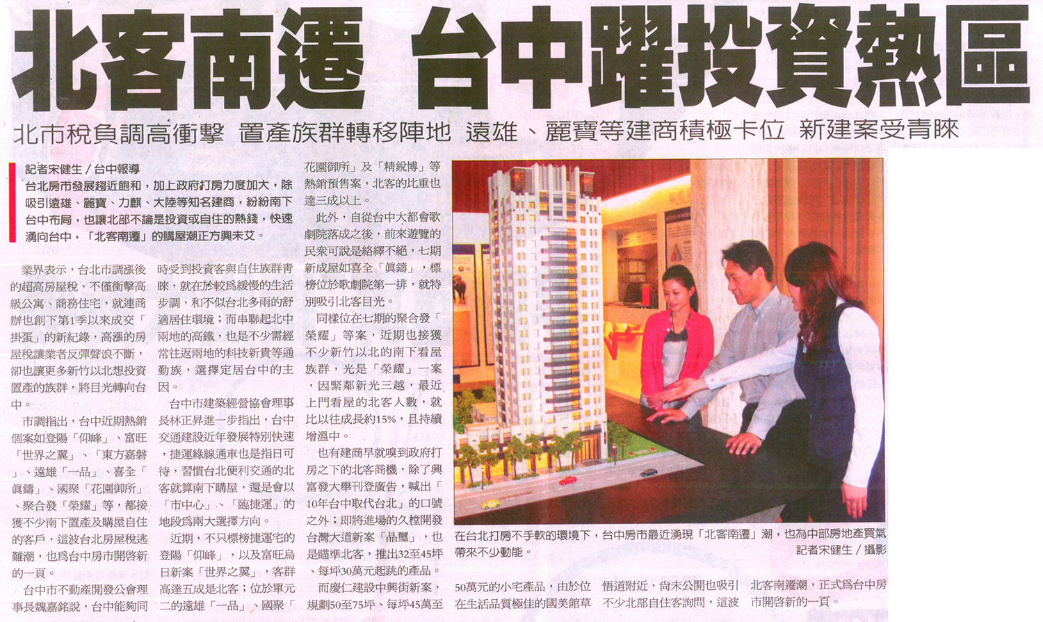 [經濟日報] 北客南遷 台中躍投資熱區 ...